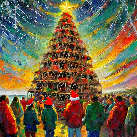 The ferry captain navigated me through the crowd as Santa sat down on the edge of the Lobster Part Tree. Making my way in front of him, Santa lifted me up, placed me on his knee, and asked, “Now, what would you like for Christmas?”