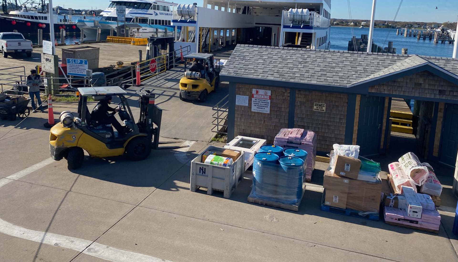 All freight must be picked up and removed from the Block Island or Point Judith facility on the day of arrival. Interstate does not store any freight at either of its facilities and is not responsible for damage or shortages as a result of items left overnight.