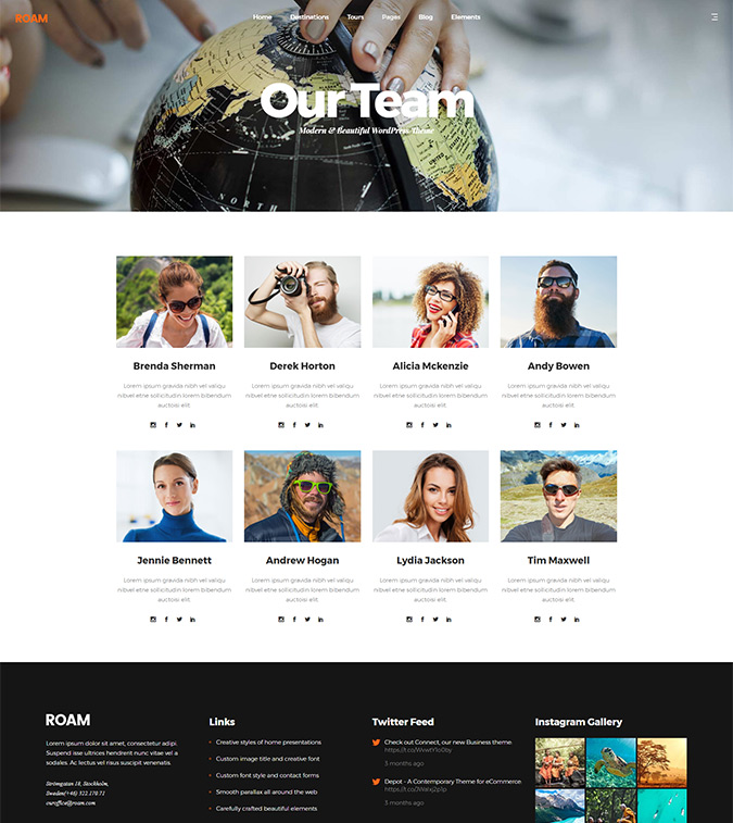 Packed with Roam is a collection of beautiful and practical inner page layouts which can be used to present each and every aspect of your business in an appealing way