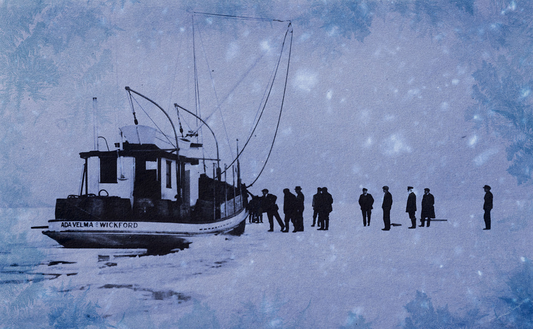 The cold snap would last for the next few months. At the beginning of the war, a naval base had been established on Block Island. Headquartered in the Narragansett Inn and Payne’s Dock, it housed over 300 sailors and nurses. The Chief Medical Officer noted, “…wind blowing 76 miles and thermometer 6.5 below… Third highest wind velocity in the United States.” In today’s terms, that would make the wind chill at about -45°! It was so cold that he reported that the “ice 12 inches thick on the ocean for considerable distance, no boats could land.” Renowned island ornithologist, Elizabeth Dickens, also noted this in her diary: “I stand on the bluff at Dickens Point at noon and look east, west, south and north with glasses and can’t see a drop of water, just one sheet of motionless ice.”